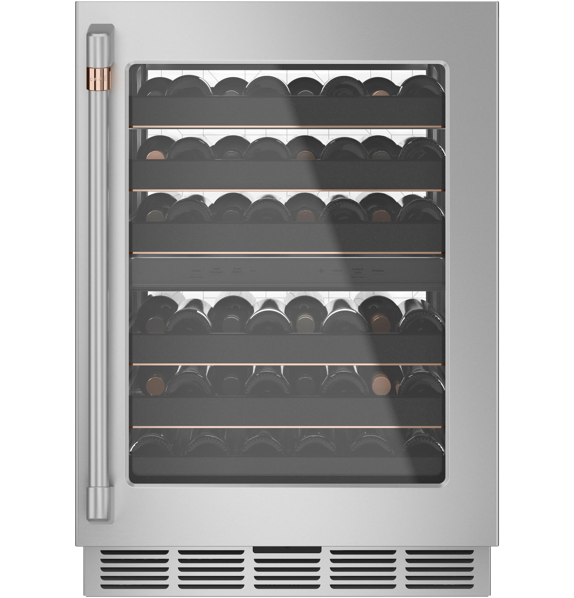LED Light WallThis wine center has an LED light wall that spans the back panel illuminating the interior so every item is easy to findMagnum Bottle StorageChill up to eight 1.5 liter bottles of wine or prosecco without scratching the label or sacrificing space on the other shelvesSmart TechnologyThe wine center has Built-In WiFi so you can control it from anywhere. Using the SmartHQ app you can remotely change your temperature or dim the LED light wall. Plus you ll get the latest connected home capabilities with new modes and updatesFlush InstallationWith built-in flush-to-cabinet installation this wine center fits in perfectly with your home s overall designDual Zone Temperature ControlThis wine center has two distinct zones that maintain any temperature between 41 and 61 degrees Fahrenheit so you can keep both red and white wines at the perfect serving temperature46-Bottle CapacityEnjoy plenty of space to store ros champagne and all of your favorite winesArticulating Door HingesThese hinges prevent the wine center door from striking anything in the kitchen including your cabinetry. They also help the door open smoothly and close softlyOpen Door NotificationsProtect your bottle collection by receiving a push notification on your smart phone each time the wine center door is openAdjustable LightingThis wine center has flexible lighting options you can change from the SmartHQ app. Choose from proximity lighting that illuminates automatically as you approach gradient lighting or lighting that turns on and off as you open or close the doorTemperature AlarmWith a WiFi connected wine center you receive notifications when the door has been left open or the power goes out. Now you can maintain ideal temperatures even when you re on the goReversible Door OptionsReversible door lets you choose whether the wine center opens to the left or the rightHidden Temperature ControlsThese temperature controls let you make easy adjustments without distracting from the wine center s overall designCustomizable Handle OptionsChoose from four unique Caf handle finishes to complement the rest of your kitchen or your other Caf appliancesFinish OptionsThis wine center comes in multiple finish options including Stainless Matte Black and Matte White