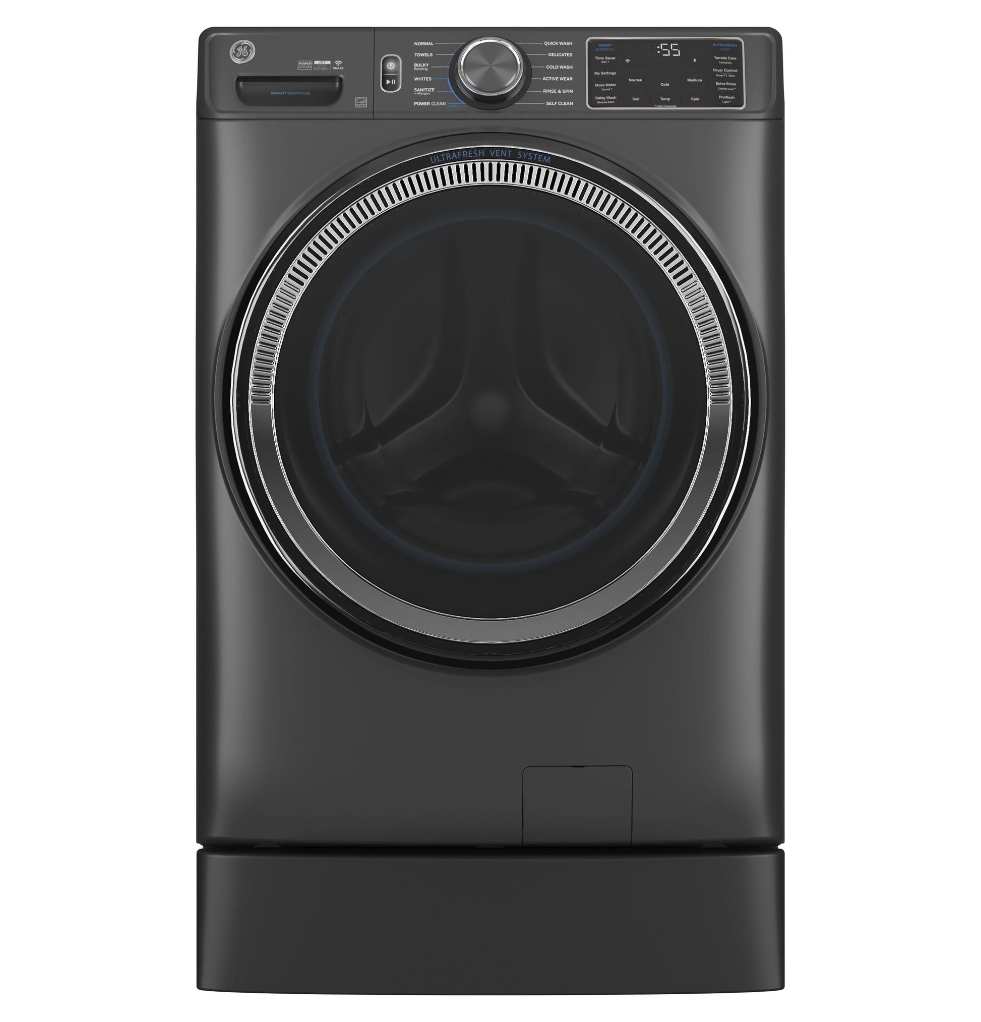UltraFresh Vent System With OdorBlockThe first and only UltraFresh Vent System with OdorBlock eliminates excess moisture to help prevent odors ensuring your washer stays fresh and clean allowing you to leave the door closed between washes.Microban antimicrobial technologyBuilt-in protection that lasts. Microban Antimicrobial Technology is infused into key washer components like the gasket dispenser and drain system helping to prevent odor causing bacteria.SmartDispense TechnologySave time and make laundry effortless with an intelligent dispenser that holds up to 32 loads of detergent and automatically dispenses the right amount each time.Sanitize + AllergenIndustry-first cycle sanitizes fabrics to kill 99% of common bacteria and allergens such as dust mites.WiFi Powered by SmartHQStay in control from anywhere. Use the SmartHQ app to start stop and monitor your laundry while receiving real-time updates and notifications.Dynamic Balancing Technology >Our patented technology senses and rebalances uneven loads reducing noise and vibration during the spin cycle providing a quiet wash.Reversible DoorEasily reverse your washer and dryer door for superior installation flexibility.PowerSteamSafely penetrates deep into fabric fibers loosening stains to deliver enhanced cleaning performance.Quick Wash CycleProvides a fast 20 minute wash for lightly soiled items.Dryer ControlWhen units are stacked turn on and control your dryer settings right from your washer s control panel eliminating the need to reach the dryer s control panel. Dryer Control works wirelessly no accessories needed.More Water OptionFor bulky items like a king-sized comforter or for heavily soiled loads the More Water Option adds up to an additional 3 gallons of water for a deep water wash and rinse.Large Capacity WasherPower through laundry day in less time with an extra large capacity washer that fits more in every load. The 5.0cu.ft capacity can easily accommodate bulky items or large loads.Shallow Depth WasherNever compromise on convenience with this 32 shallow depth washer that easily fits into tight spaces like an alcove or closet making it a suitable solution for homes of any size.