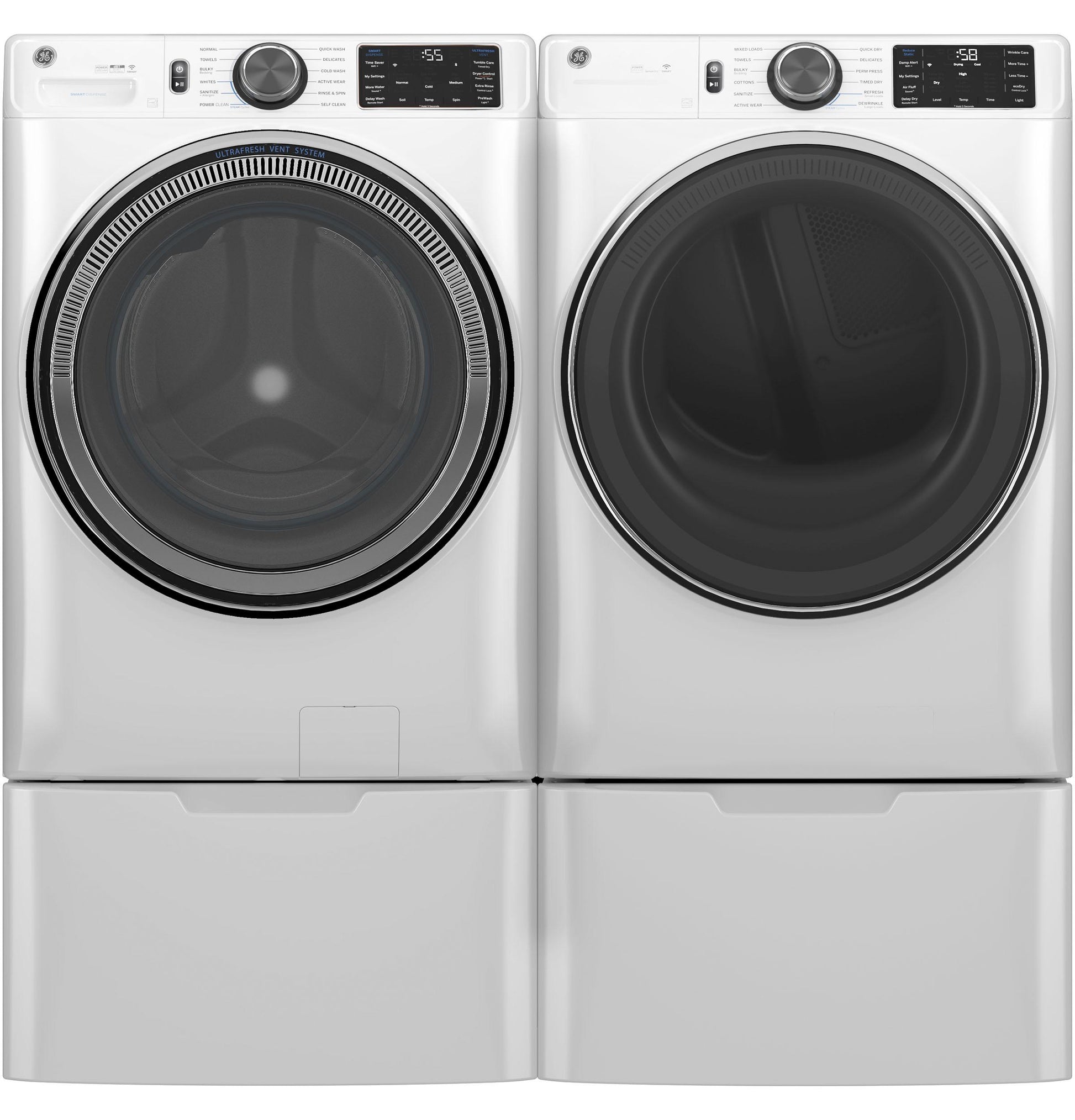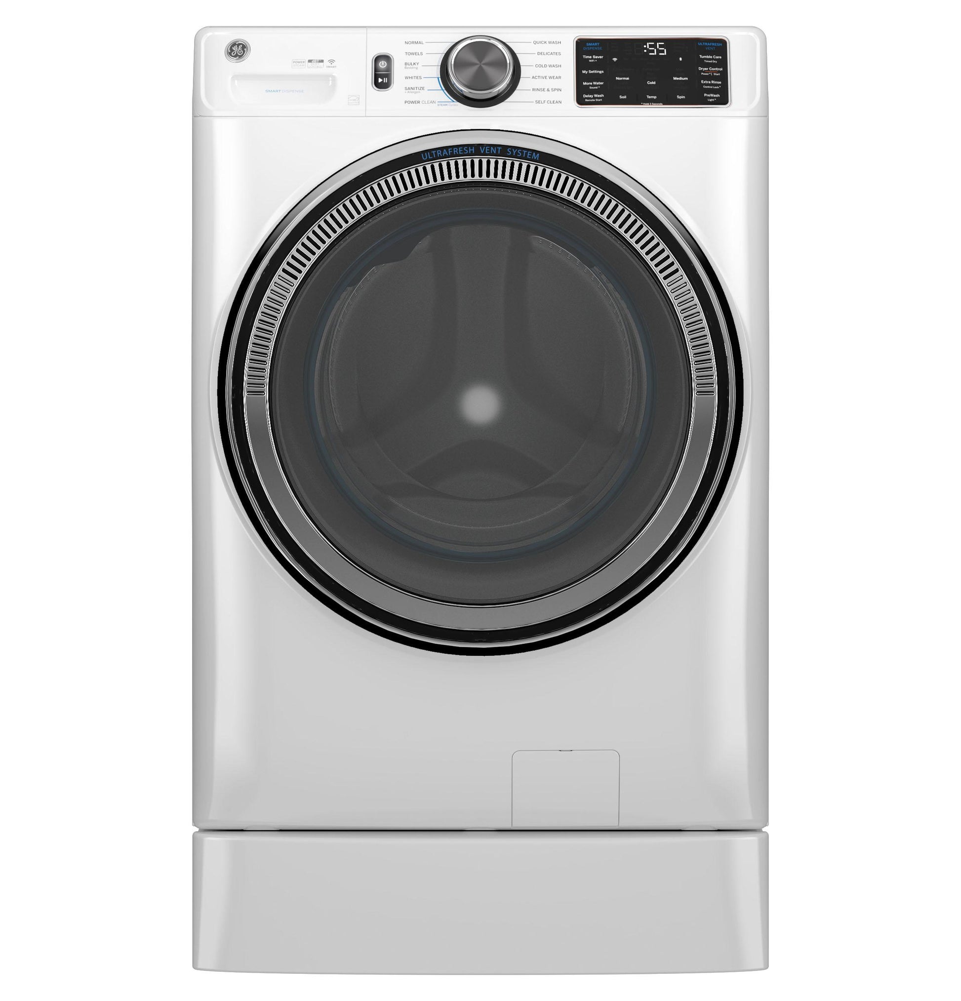 UltraFresh Vent System With OdorBlockThe first and only UltraFresh Vent System with OdorBlock eliminates excess moisture to help prevent odors ensuring your washer stays fresh and clean allowing you to leave the door closed between washes.Microban antimicrobial technologyBuilt-in protection that lasts. Microban Antimicrobial Technology is infused into key washer components like the gasket dispenser and drain system helping to prevent odor causing bacteria.SmartDispense TechnologySave time and make laundry effortless with an intelligent dispenser that holds up to 32 loads of detergent and automatically dispenses the right amount each time.Sanitize + AllergenIndustry-first cycle sanitizes fabrics to kill 99% of common bacteria and allergens such as dust mites.WiFi Powered by SmartHQStay in control from anywhere. Use the SmartHQ app to start stop and monitor your laundry while receiving real-time updates and notifications.Dynamic Balancing Technology >Our patented technology senses and rebalances uneven loads reducing noise and vibration during the spin cycle providing a quiet wash.Reversible DoorEasily reverse your washer and dryer door for superior installation flexibility.PowerSteamSafely penetrates deep into fabric fibers loosening stains to deliver enhanced cleaning performance.Quick Wash CycleProvides a fast 20 minute wash for lightly soiled items.Dryer ControlWhen units are stacked turn on and control your dryer settings right from your washer s control panel eliminating the need to reach the dryer s control panel. Dryer Control works wirelessly no accessories needed.More Water OptionFor bulky items like a king-sized comforter or for heavily soiled loads the More Water Option adds up to an additional 3 gallons of water for a deep water wash and rinse.Large Capacity WasherPower through laundry day in less time with an extra large capacity washer that fits more in every load. The 5.0cu.ft capacity can easily accommodate bulky items or large loads.Shallow Depth WasherNever compromise on convenience with this 32 shallow depth washer that easily fits into tight spaces like an alcove or closet making it a suitable solution for homes of any size.