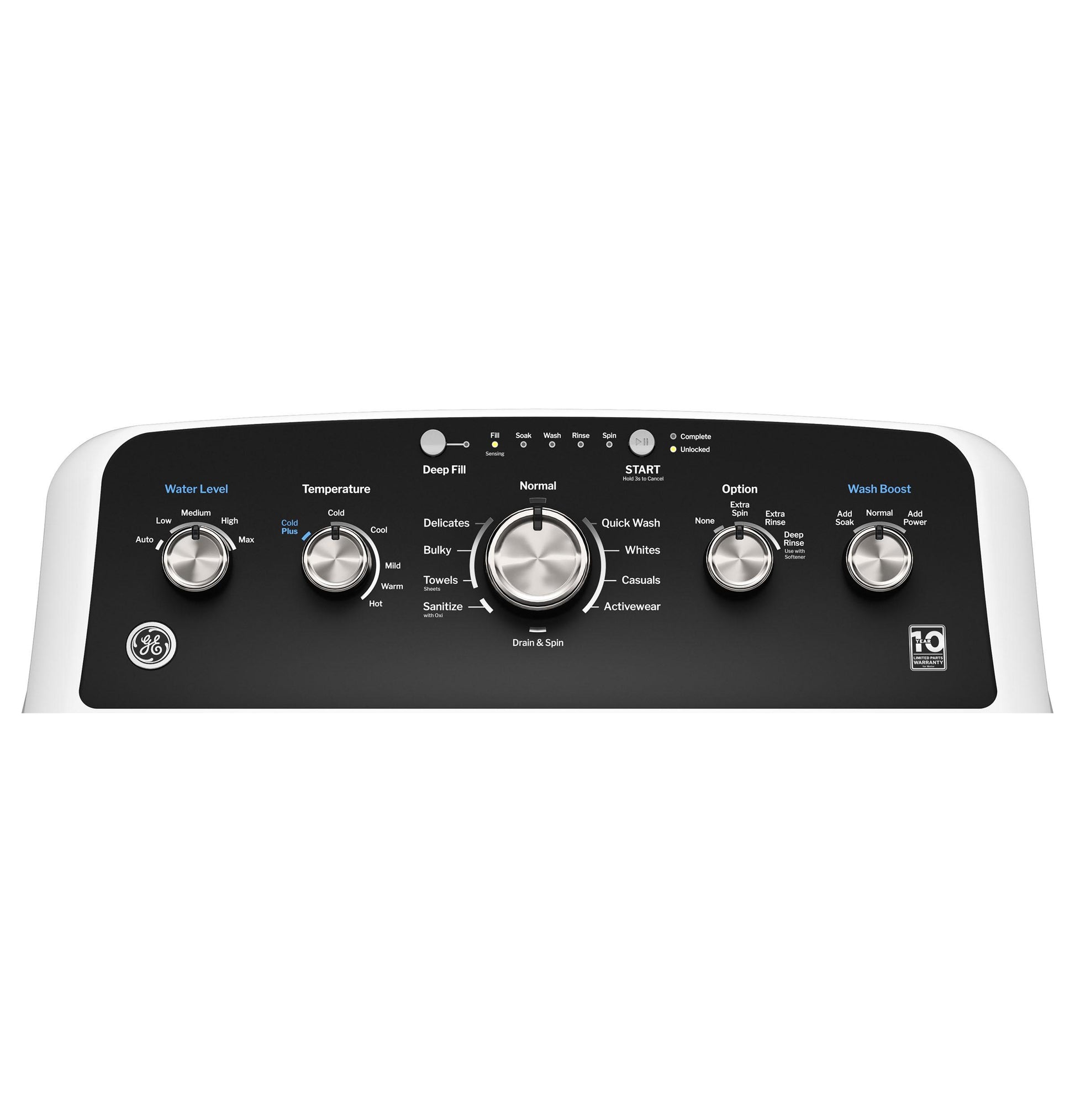 Large 4.5 Cu.Ft. CapacityPower through laundry day in less time than ever before with a large capacity washing machine that can easily handle big loads and bulky items.Wash BoostBoost the wash performance of any cycle by adding an extra 15 minutes of soaking power for stubborn stains or more powerful agitation for heavily soiled items.Cold PlusWash without compromise in cold water. When selected Cold Plus adjusts wash action to achieve a great clean on any wash cycle while saving up to 90% on energy costs * Energy savings using cold water vs. hot water for the normal cycle with a max load using the Doe test procedure to measure machine and hot water energy.True Dual-Action AgitatorThis durable built-in Dual Action Agitator provides better circulation and turnover of clothes to achieve a deep clean while being gentle on your clothes.Water Level ControlManually add up to 26 gallons of water to your washer or let the washer optimize with auto-fill for great cleaning results no matter the cycle selected.10-Year Limited Motor WarrantyEnjoy peace of mind for years to come with a washer warranty that backs the motor with a dependable 10-year limited warranty.Sanitize with Oxi Remove 99% of bacteria with a dedicated cycle that lets you sanitize with Oxi. The additive boosts your detergent s cleaning power so that you can keep your fabrics looking and feeling their best.Deep FillPress a single button on this deep fill washer to add an additional 3 gallons of water or press and hold the button to fill up to a full 26 gallons.Deep RinseEnsure that all your garments are free from detergent fabric softener stubborn soils and even pet hair in this deep rinse washing machine.Stainless Steel DrumStainless steel basket ensures both your appliance and your clothes are protected from rust chips peeling or snagsLate Lid Lock SafetyPre-treat stains infuse detergents or add in forgotten clothes without being locked out with the convenient Late Lid Lock Safety. When the water level is manually selected the lid only locks during the final spin for safety.Status NotificationEffortlessly monitor your wash cycle using the notification display that lights to indicate fill soak wash rinse or spin status at a glance.Bleach and Fabric DispensersEliminate the need to add bleach and softeners mid-cycle with automatic bleach and softener dispensers in the washing machine.Made in AmericaThis American-Made washing machine contains 70 to 90% U.S. content.
