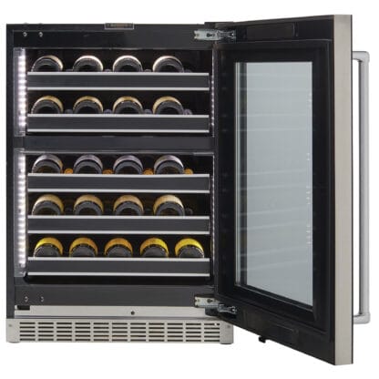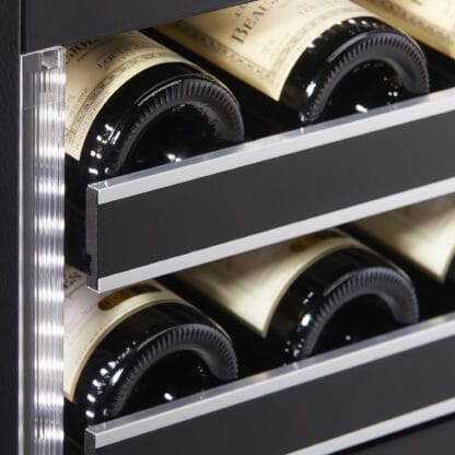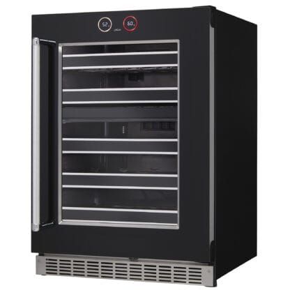 Experience wine storage like never before with our premium built-in wine cellar. The Invisi-Touch Display allows you to adjust settings with a simple tap on the glass while Temperature-Guided Rings make choosing the perfect temperature a breeze. The Nek Cradle system stores up to 37 bottles and Organic Maple Shelves cradle your wine with care. Parametrical Lighting illuminates your collection beautifully and Dual Chambers let you store white and red wines at different temperatures. With a self-closing door and quiet operation this wine cellar is a must-have for any wine enthusiast.